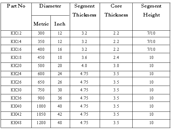 According to different solidification time and hardness of concrete, concrete cutting blades can be classified into three main types: green concrete blade, cured concrete blade, reinforced concrete blade (with shape protection segments) Application: